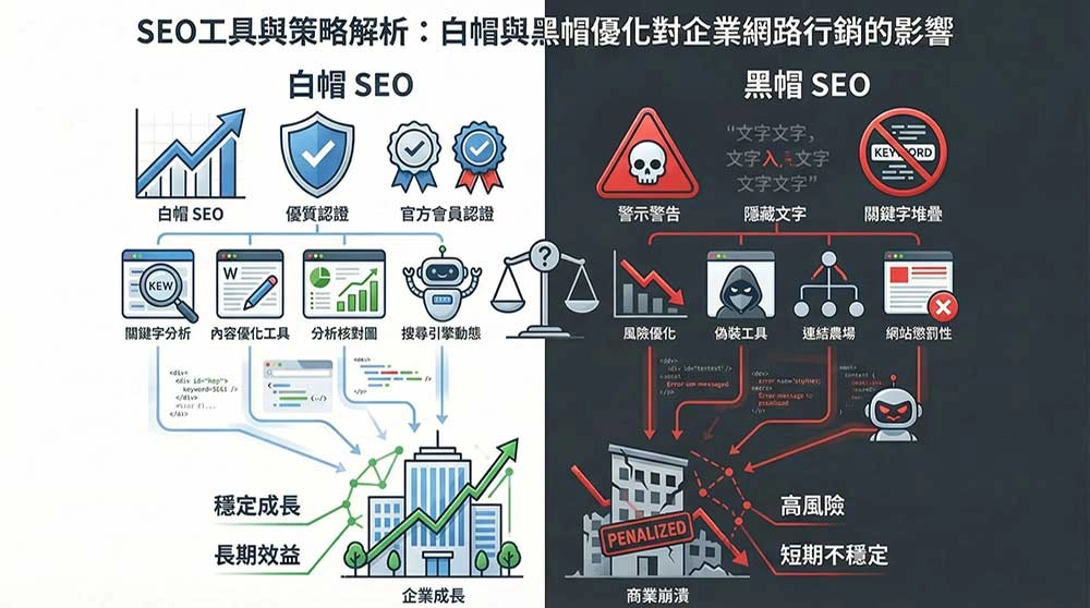 SEO工具與策略解析:白帽與黑帽優化對企業網路行銷的影響